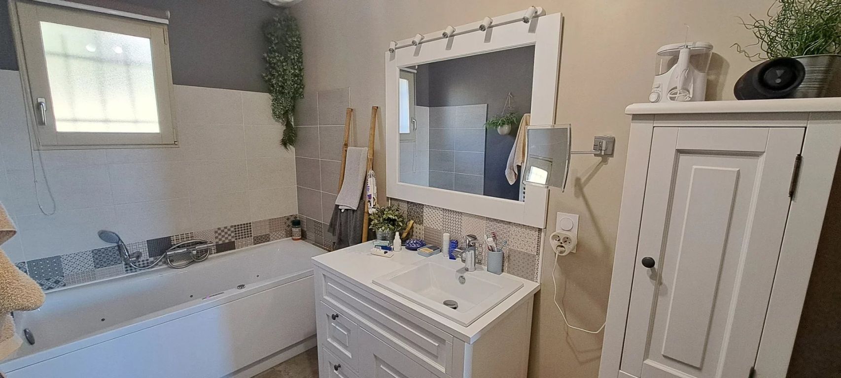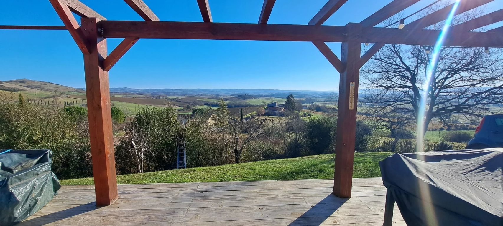 Maison plain pied avec vue panoramique Lautrec maison de plain pied de 98m² habitable construite en 2019 sur une parcelle de 1425m2. Elle se compose d'une pièce de vie de 42m² avec cuisine équipée, trois chambres avec placard, une salle de bain, un wc séparé, un cellier et un garage. L'extérieur de la maison est aménagé, vous trouverez une terrasse de plus de 50m² avec une vue imprenable sans vis à vis, un porche pour deux voitures aménagé en 2023, une place de stationnement supplémentaire, un terrain de pétanque ainsi qu'un portail pouvant devenir électrique (gainé). Un plateau a également été créé sur les hauteurs du terrain pour pouvoir bénéficier de deux places de stationnements complémentaires.